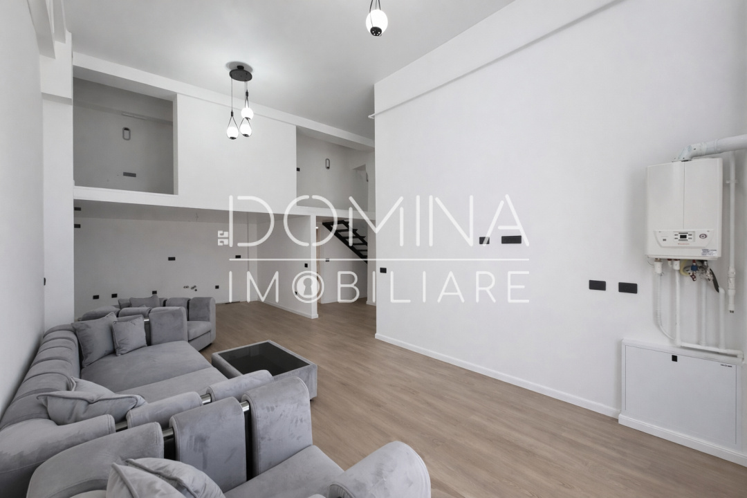 Apartamentul este amplasat la etajul 1 al unui imobil nou, finalizat în 2024, prevăzut cu lift, acces securizat și spații comune elegante, cu casa scării placată cu travertin. Proprietatea impresionează printr-un stil unicat, tip loft, cu înălțime generoasă și compartimentare modernă, oferind un ambient spectaculos și rafinat.