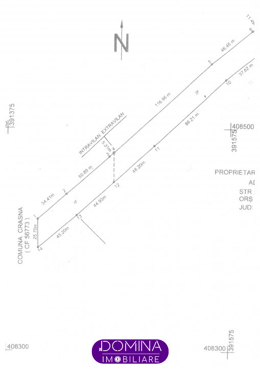 - Front stradal: 28 m.l. la drumul principal asfaltat